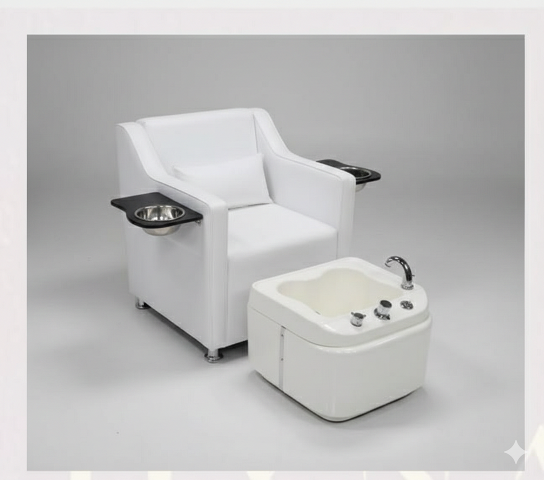 Create a premium nail salon experience with this luxury pedicure spa chair, designed for comfort, functionality, and modern salon interiors. The chair features soft cushioned seating with ergonomic armrests, allowing clients to relax during pedicure and foot spa treatments.